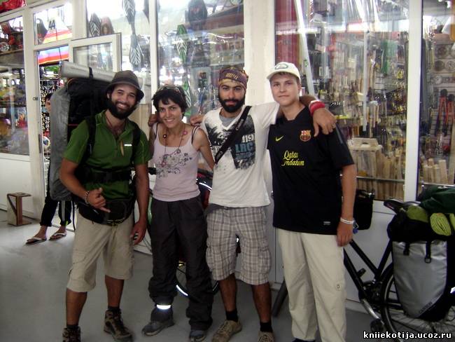 А в это время Андрей с новыми знакомыми идут к тому мужику, весело болтая и узнавая друг о друге.. Эти трое путешествуют на великах по миру(из Франции, через Европу в Азию.).. Рассказывают - где были и куда теперь поедут..