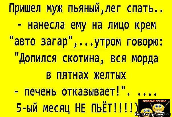 | Так говорят в Одессе... порадуйтесь 1. Вы уходите, слава Богу, или остаётесь, не дай Бог? 2. Я имею Вам кое-что сказать… 3. Ой, не надо меня уговаривать, я и так соглашусь! 4. Стал заносчивый, как гаишник с престижного перекрёстка. 5. Я вас уважаю, хотя уже забыл за что! 6. Ну ты посмотри на этого патриота за мой счёт! 7. Шо, так плохо живёте — тока в одной руке сумка? 8. На тебе, такое выкинуть! Взял и умер посреди полного здоровья! 9. Вы шо, с мозгами поссорились??? 10. Ну, так вы будете покупать, или мне забыть вас навсегда? 11. Щаз я сделаю вам скандал и вам будет весело. 12. Уважаемые жильцы! Имейте совесть, выкидывайте мусор в соседний двор! 13. Фима, не расчесывай мне нервы… 14. Товарищ! Вы мне мешаете впечатляться! 15. В одесском трамвае: — Мадам, ваша нога у меня поперёк горла стала… 16. Шо ты хочешь от моей жизни? Уже сиди и не спрашивай вопросы… 17. Зять — это инородное тело в доме… 18. У тебя есть деньги, чтобы так себя вести? 19. Яша, ты только посмотри, какая у нее тазобедренная композиция! 20. Сеня, не бежи так шустро, а то, не дай Бог, догонишь свой инфаркт. 21. Мужчина, что вы тулитесь вперед меня? Вас здесь не стояло. 22. Не морочьте мне то место, где спина заканчивает свое благородное название! 23. Ta не надо мне делать нервы, их есть кому портить. 24. Не хочу Вас расстраивать, но у меня все хорошо. 25. Вы шо, спешите скорее, чем я?! 26. Улыбайтесь… завтра будет еще хуже… 27. Я себе знаю, а вы себе думайте, что хотите. 28. — Ну, почему какие-то несчастные штаны вы мне шили месяц?! Бог мир за семь дней создал, а тут — брюки — месяц!.. — Ха, молодой человек… Вы посмотрите-таки на этот мир — и вы посмотрите на эти брюки!.. 29. — Соломон, сколько будет семью восемь? — А мы продаем или покупаем? 30. Вы вот это здесь рассказываете на полном серьезе? Ничем не рискуя? Нет, Вы мне просто начинаете нравиться! 31. Не делай мине беременную голову! 32. Мне-таки стыдно ходить с вами по одной Одессе! 33. Я готов послушать за вашу просьбу. 34. Я личность творческая - хочу творю, хочу вытворяю. 35. Шоб я Вас так забыл, как я Вас помню! 36. В трамвае: — Вы на следующей виходите? — Выхожу. — А впереди вас люди виходят? — Выходят! — А ви их спгашивали? — Спрашивал!! — Ну и шо они вам сказали? 37. — Сара, не смей мне возражать! — Абрамчик, я и не возражаю. Я молчу. — Тогда убери мнение со своего лица! 38. — Роза Моисеевна, сколько Вам лет? — Та каждый год по-разному! 39. Одесса. Дерибасовская. По ней мечется взмыленный интеллигент. Подскакивает к одесситу: — Вы не знаете, где находится почта? — Знаю. А зачем она вам? — Хочу послать деньги родителям в Москву. — Пошлите со мной. — Нет! Я вас не знаю! — Не бойтесь, пошлите со мной! — Нет! Ни в коем случае! Вы меня обманете! — Ну ладно, если ты из Москвы, скажу тебе по-русски: Идёмте со мной! Я покажу, где почта! 40. Две одесситки: — Роза, как тебе нравится моё новое платье? — Извини, Сара, я спешу, мне сейчас не до скандалов! 41. — Или вы думаете, шо вы не опоздали? Так я вам скажу, шо таки да. 42. — Боря! Не бей так сильно Изю! Вспотеешь! 43. — Мойше, когда тебя нету дома, соседи про тебя такое говорят!.. — Ой, когда меня нету дома, так пусть они меня даже бьют! 44. — Вы не скажете, почем стоит это мясо? — Почему не скажу?! Мы с вами разве поссорились? 45. — Мадам Трахтенберг, ваша Софочка выходит замуж? — Да, понемножку.